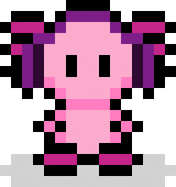 She's an axolotl. Axolotls are salamanders. The pink lines hanging off her face are gils!